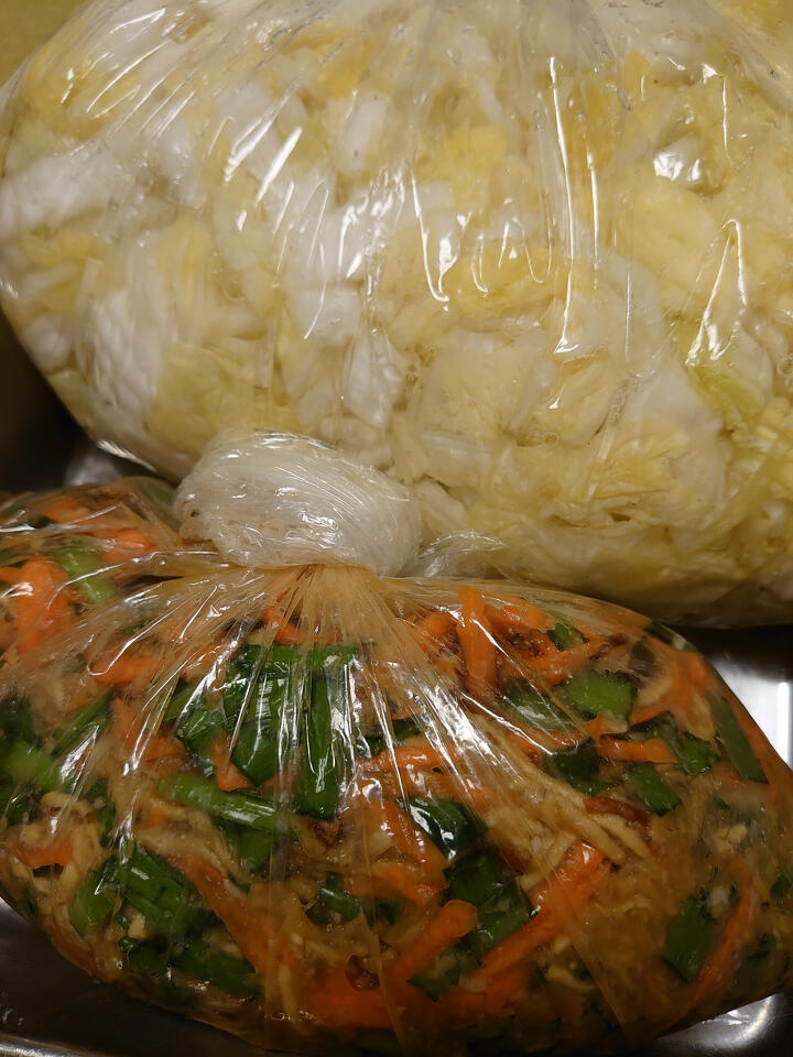 私は、かぶら寿司の残りの輪切り唐辛子を使っているので、白いキムチになってしまっています。