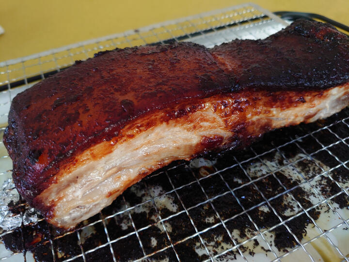 我が家は、外仕事の光男さんはじめ、次男、三男と、ガッツリ食べるものですから、最近は、ブロック肉をある程度の小分けにして漬け込み、焼きあがりをド~ンと一塊で個別に出してしまいます。